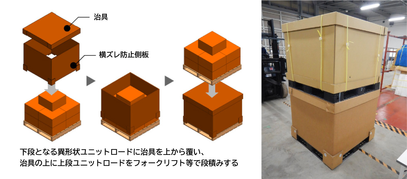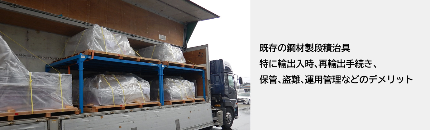 今回受賞した「ワンウェイ段積治具」は、国際輸送の混載における段積みの効率化を狙ったものです。