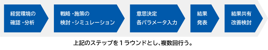 ゲームのロジック自体は変わりませんが、ラウンド毎のビジネス条件はその都度変わります。例えば、第一ラウンドでは生産工場は日本で消費者も日本にしかいない、第二ラウンドでは中国市場もターゲットになる、といった具合です。